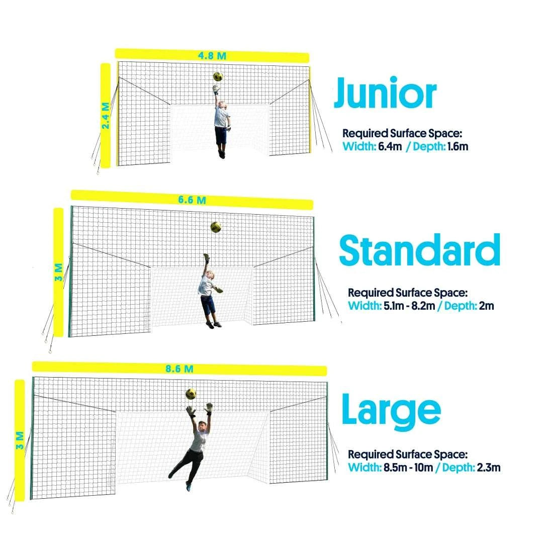 Every version of the Open Goaaal can be used by players of any age and skill level, since it also functions as a rebounder and backstop. We recommend getting the largest size Open Goaaal that your yard has the space to accommodate, however, if you would like to match the goal size with the player’s age group, here are some recommendations: