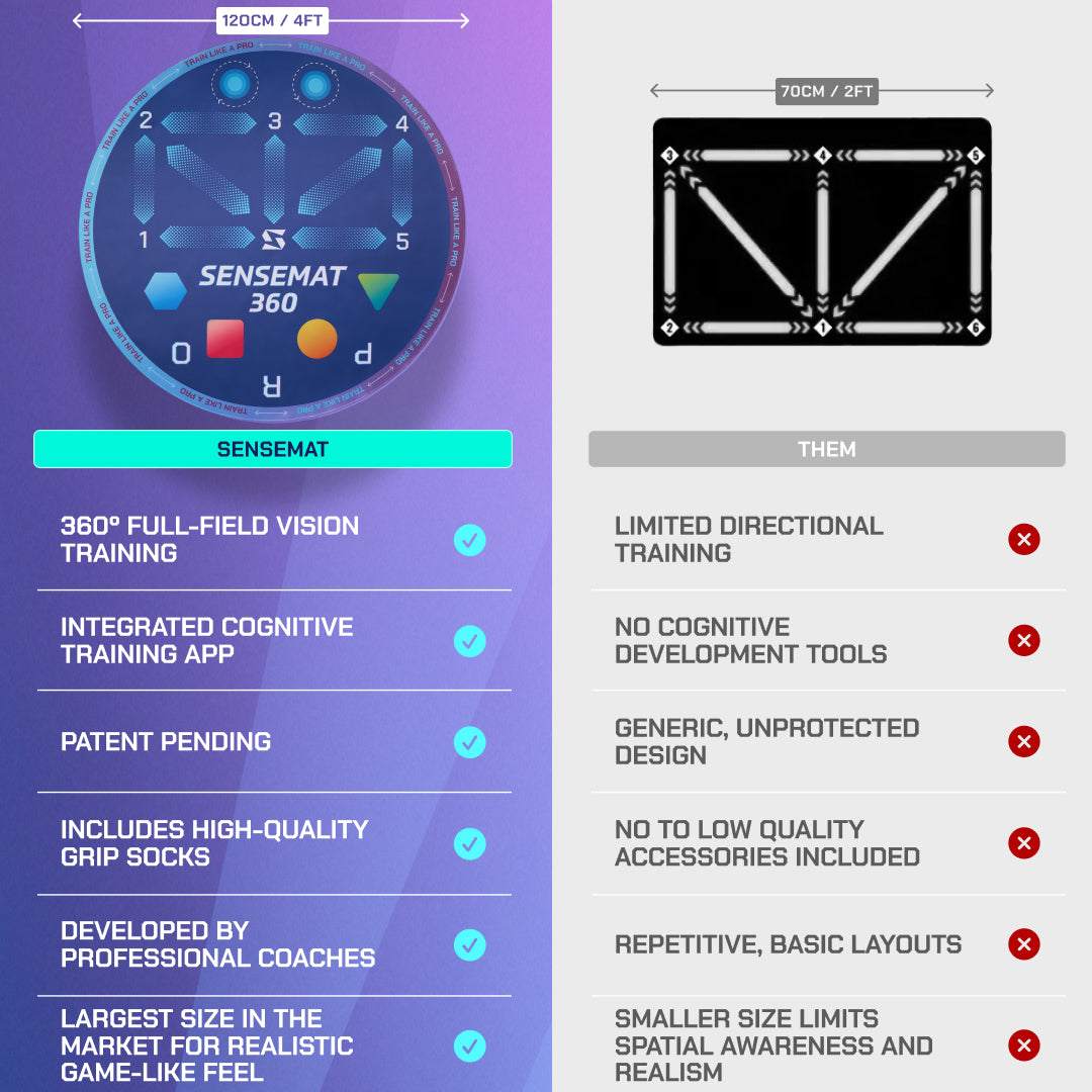 Engineered to boost your dribbling, balance, and decision speed, SenseMat 360 transforms players into smarter, two-footed athletes. With 50+ pro-level drills and seamless integration with the SenseBall app, it’s the ultimate addition to any serious player’s training kit.